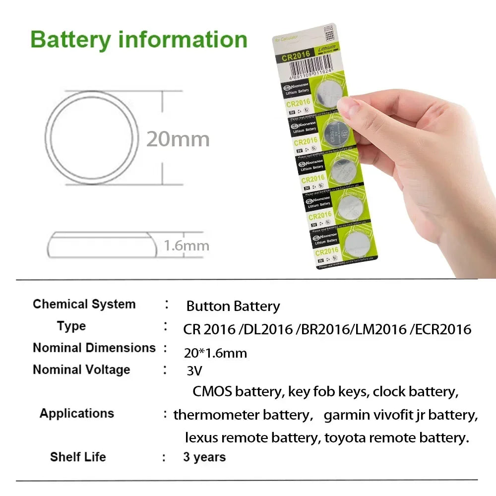 ★High quality: no mercury, more environmentally friendly CR 2016 battery. Very low self-discharge, high leakage protection.