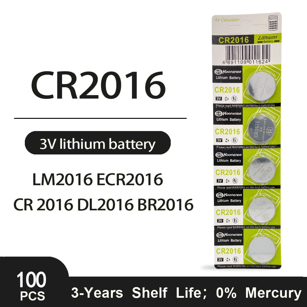 100Pcs 3V CR2016 Button Batteries LM2016 BR2016 DL2016 CR 2016 Cell Coin Lithium Battery For Watch Electronic Toy Calculators