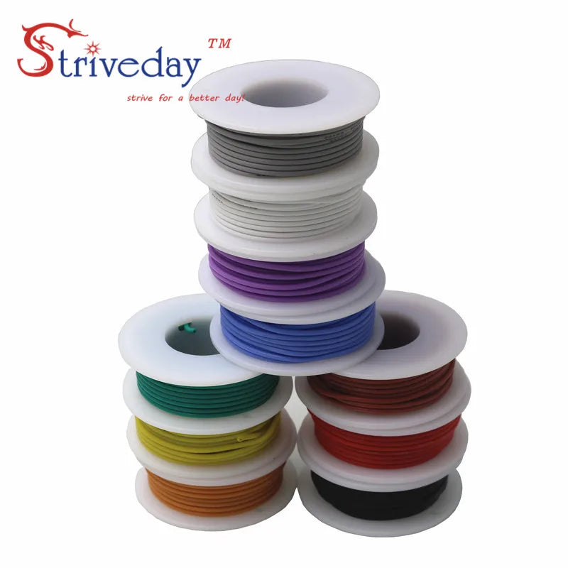 10m/roll 33ft 24awg Soft Silicone stranded Cable Wire Insulation Tinned Copper Electrical Wires DIY 10 colors to choose
