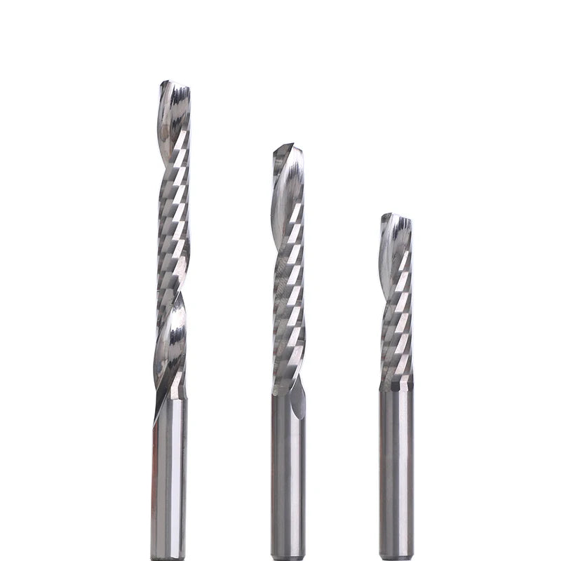 10pcs 3.175/4/5/6/8mm Carbide CNC Router Bits one Flutes Spiral End Mills Single Flute Milling Cutter PVC Wood Cutter CEL 8-62mm