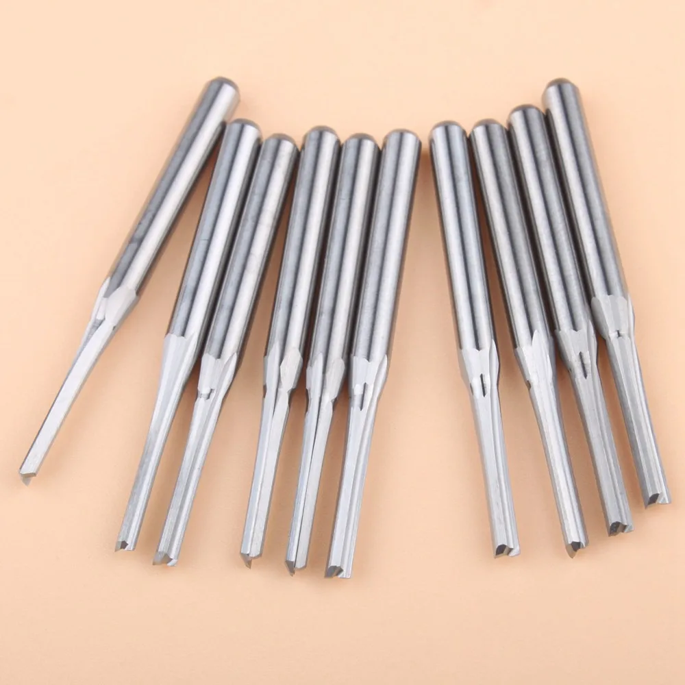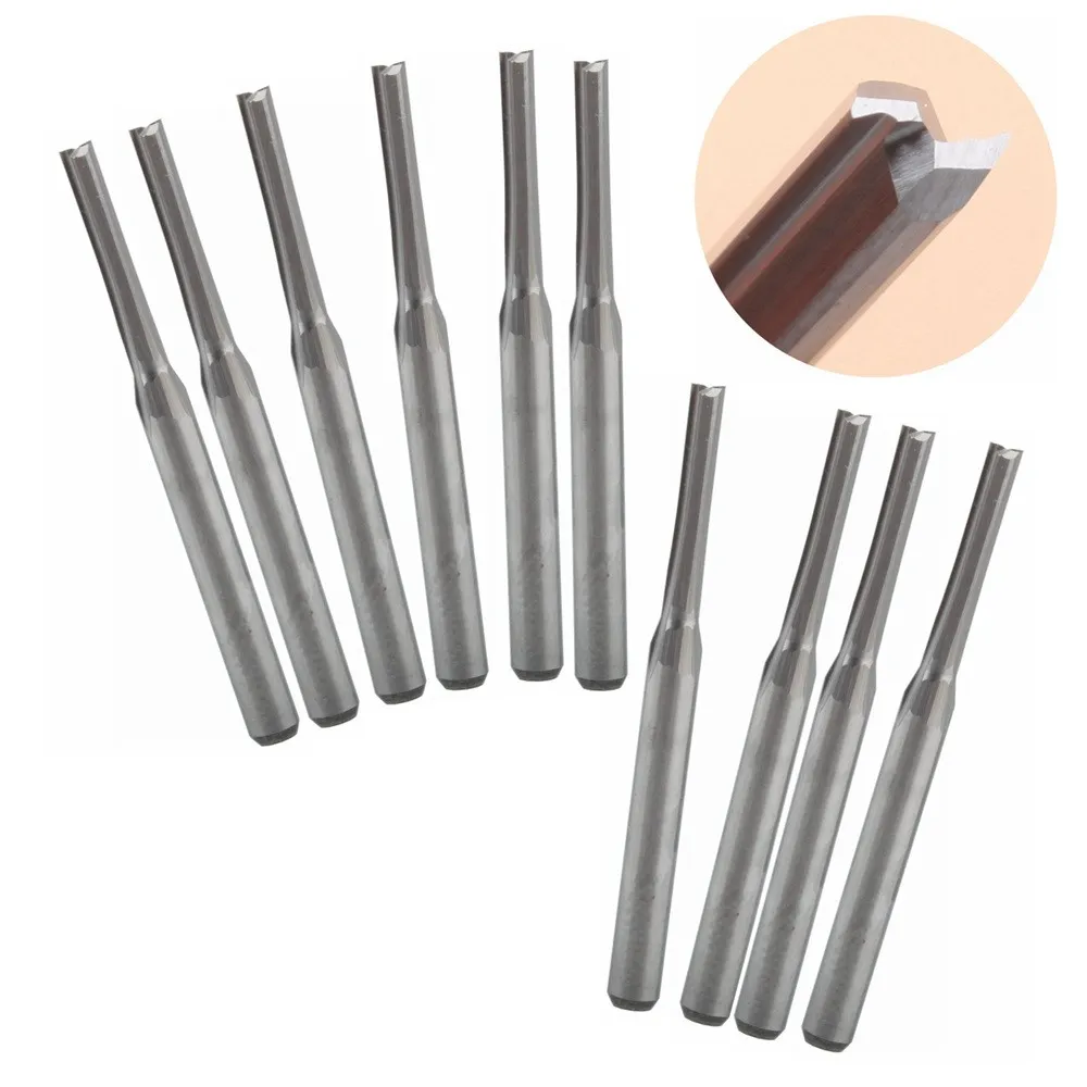 10pcs 3.175mm *2 *12mm Double Two Flute Straight Slot CNC Router Bits For Wood Milling
