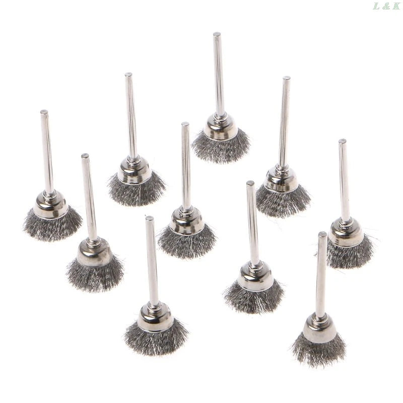 10pcs Cup Shape Steel Wire Wheel Brushes for Dremel Electric Tool Rust Cleaning Rotary Tool for The Engraver Abrasive Materials