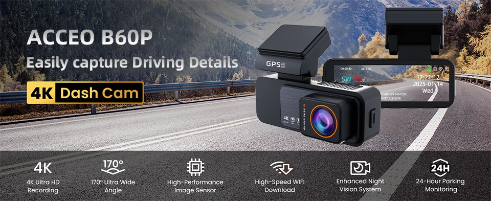The B60P adopts HiSilicon Chip main processor and Sony IMX678PL image sensor. The front camera can achieve ultra-high-definition 3840x2160P shooting effect, and the rear camera can also achieve 1080P high-definition quality.