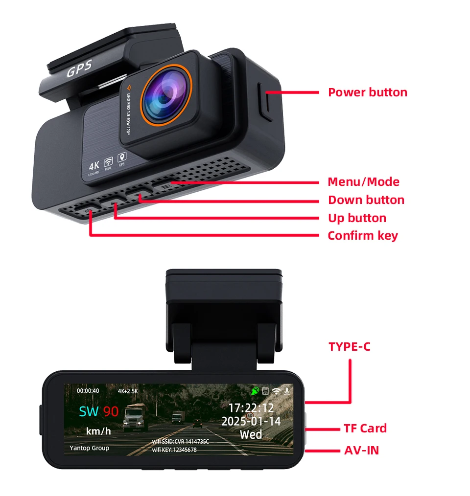 ➤Rear Camera Upgrade: Support max 15 meters cable Rear Camera ➤Add Features: Night Vision, 3840x2160P front Camera, 4K video resolution, WiFi, Built-in GPS tracking