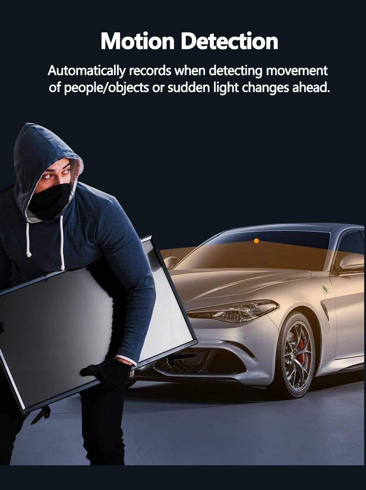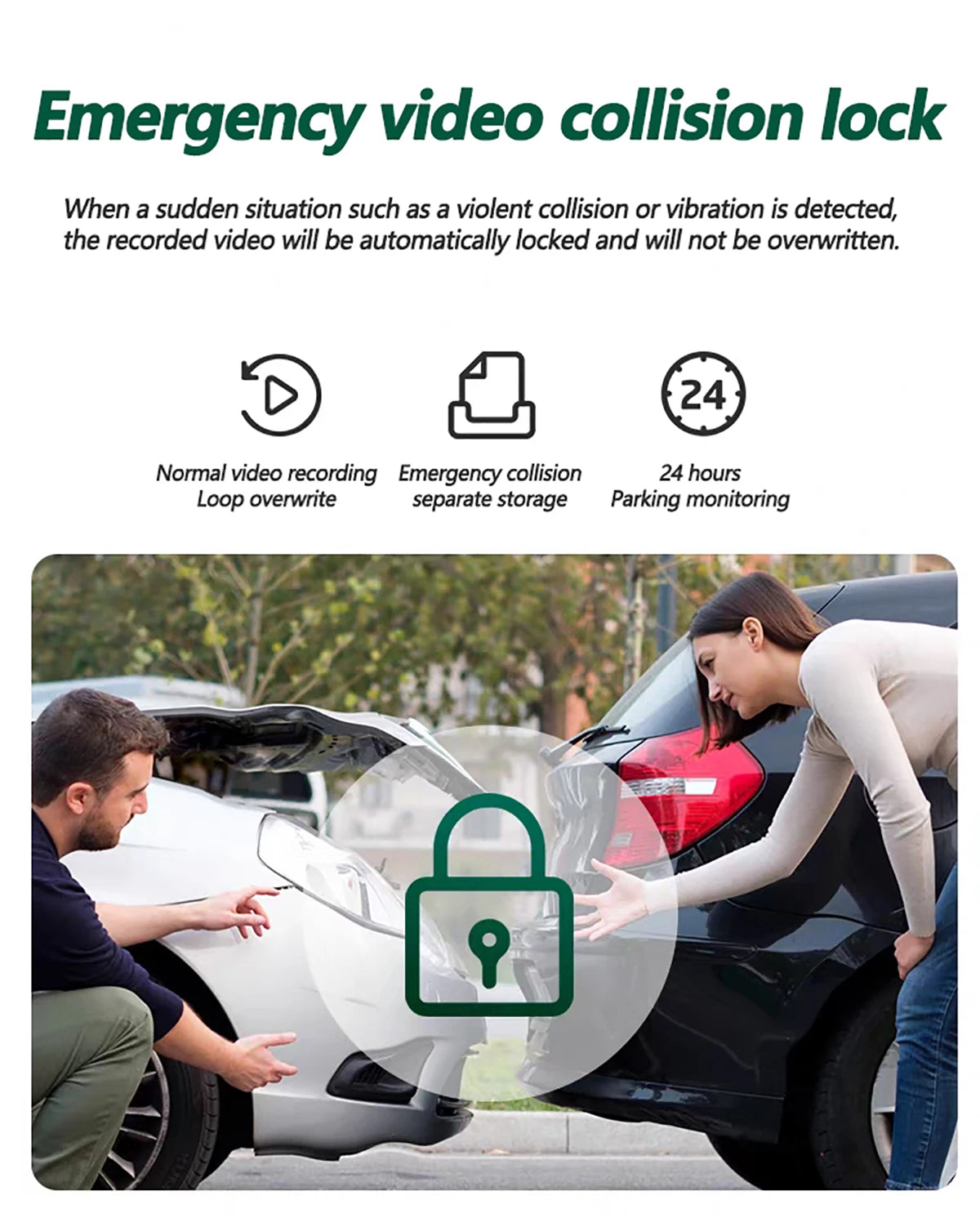 Detects impacts/shakes and instantly protects footage in a locked folder—never overwritten, ensuring ironclad evidence.