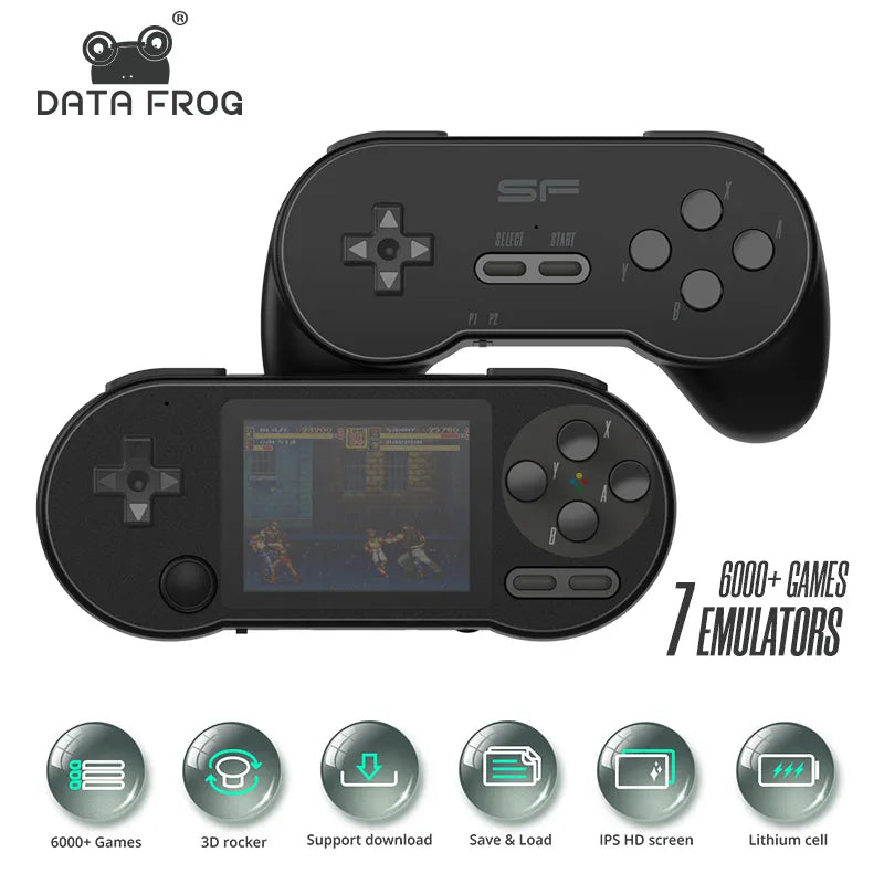 DATA FROG SF2000 3 inch HD Handheld Game Console Player Mini Portable Game Console Built-in 6000 Games Retro Games Support AV Output