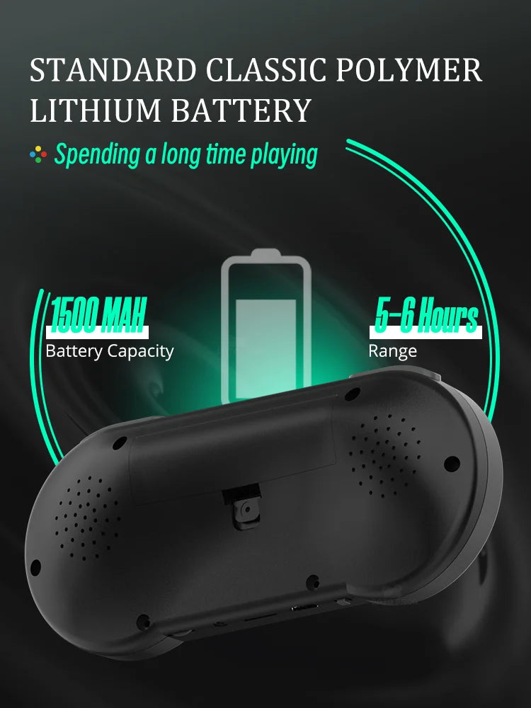 Built-in 1500mAh high-capacity lithium battery can be charged, fully charged to support 5-6 hours of game time. You don't need to worry about insufficient power when you go on business trip, travel or camping. (Note: Please fully charge the battery before the first use.)