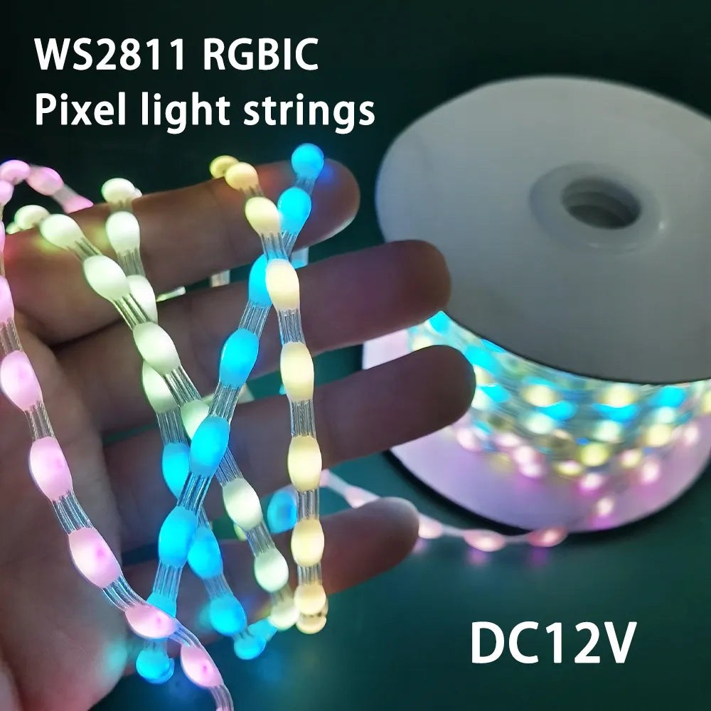 DC12V Pixels Magic Light Strings WS2811 RGBIC Dream Color Fairy String Lights Individually Addressable 1.5/2/2.5/3/5cm Spacing