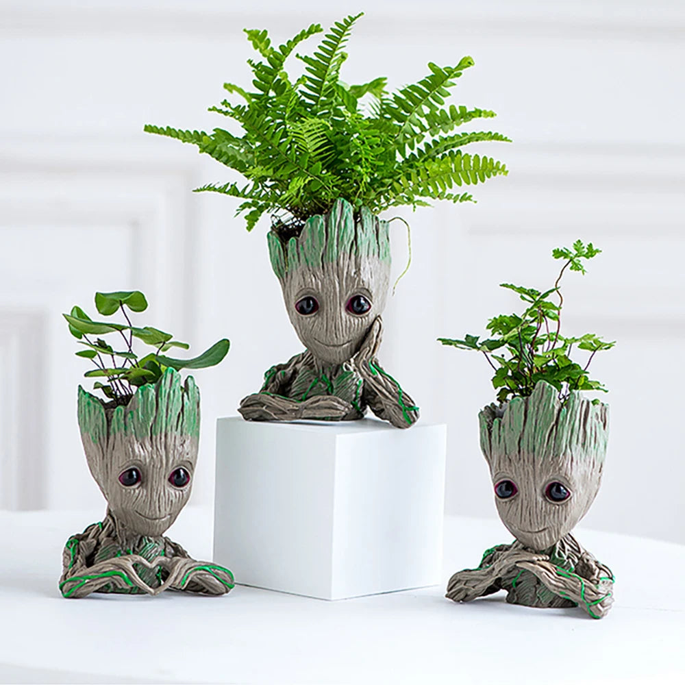 Marvel Figure Groot Flower Pot Tree Man Planter with Drainage Hole Pencil Pen Holder Office Party Ornament Birthday Gift Planter
