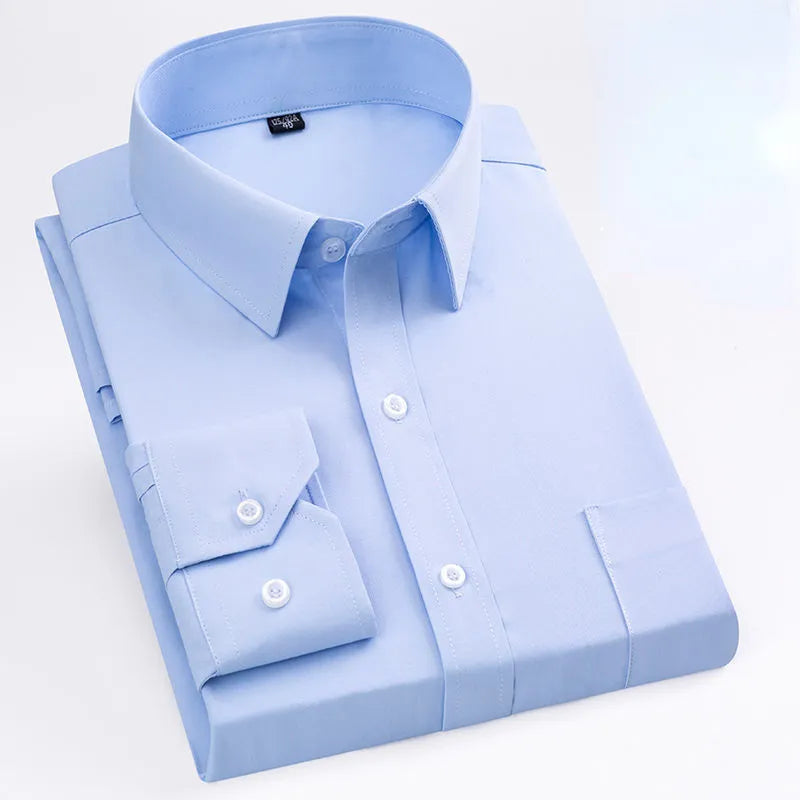 Solid Basic Dress Shirt Big Plus Size 7XL 8XL Long Sleeve Male Standard-fit Formal Social Grey Blue Work Office Business Shirts