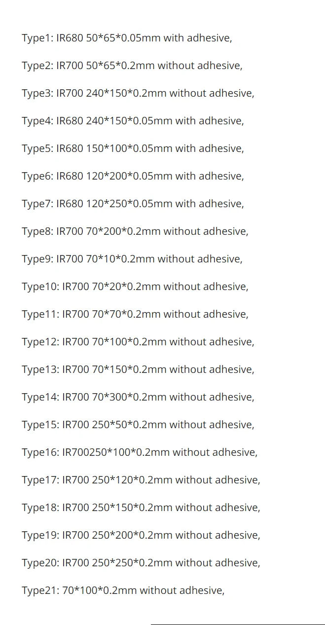 The spectrogram of thin film IR700 is as follows: the thickness of 0.3mm is currently out of stock
