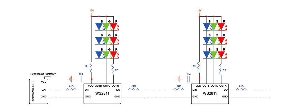 WS2811 Must Use DC12V Power Supply AND Led Controller to Control!