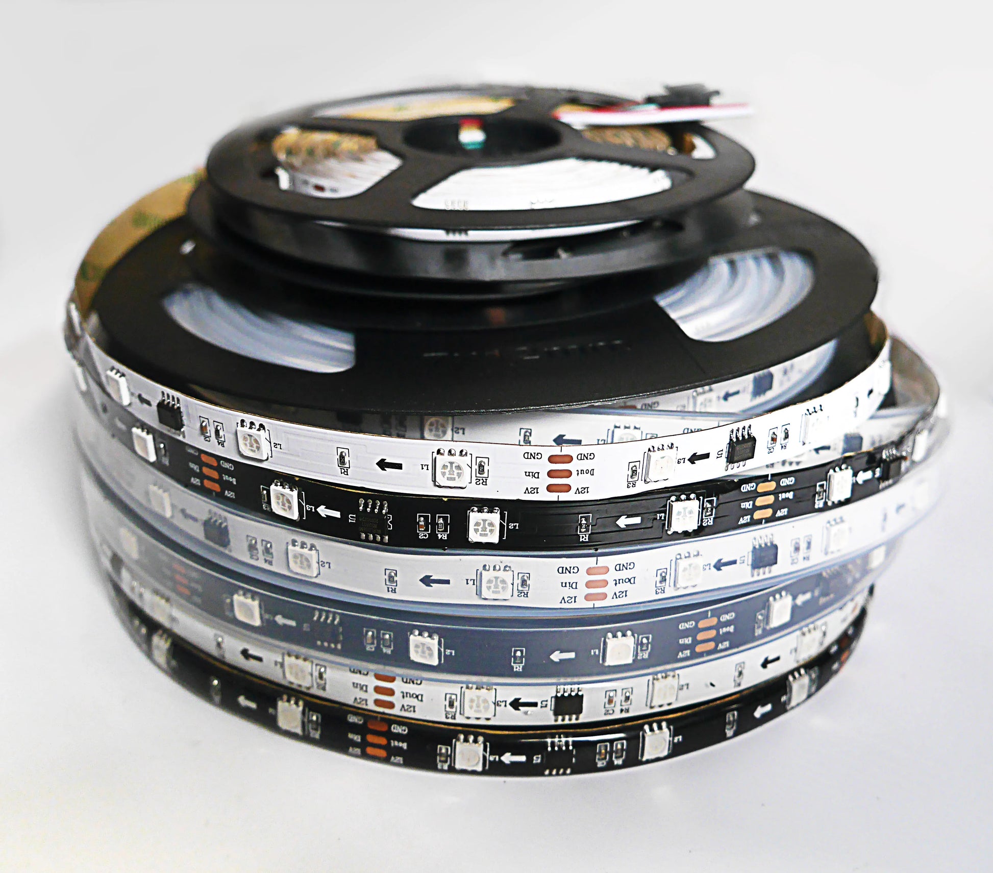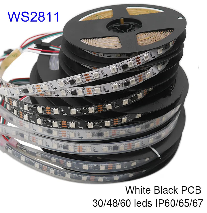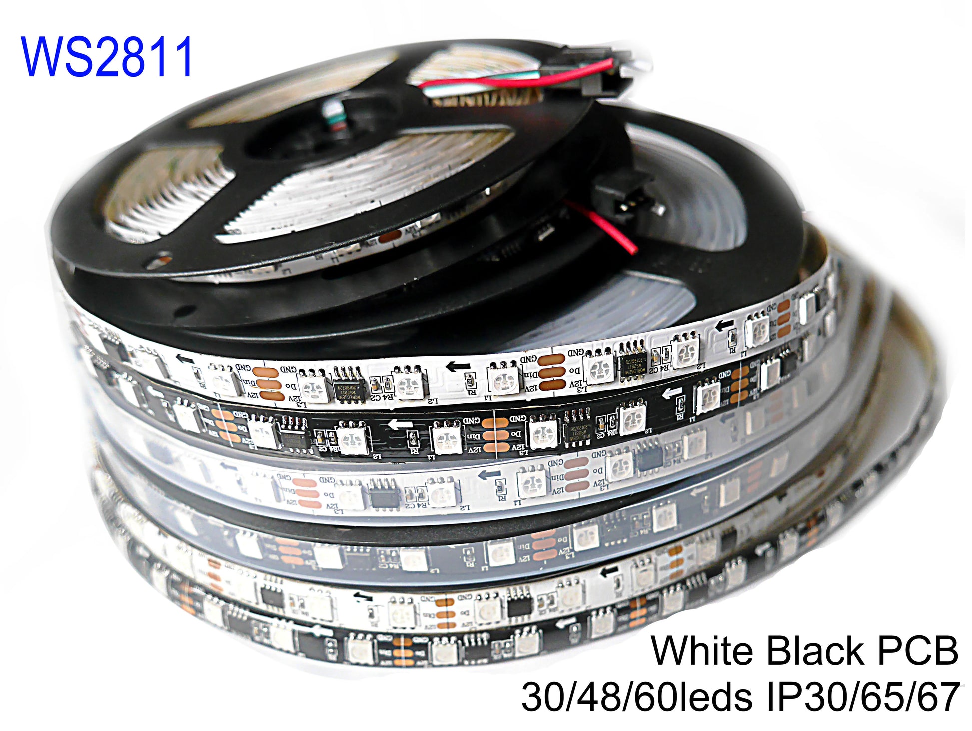 WS2811 Smart Pixel LED Strip DC12V 30/48/60leds/m 5m/lot White/Black PCB Full Color RGB LED Light Strip Neon